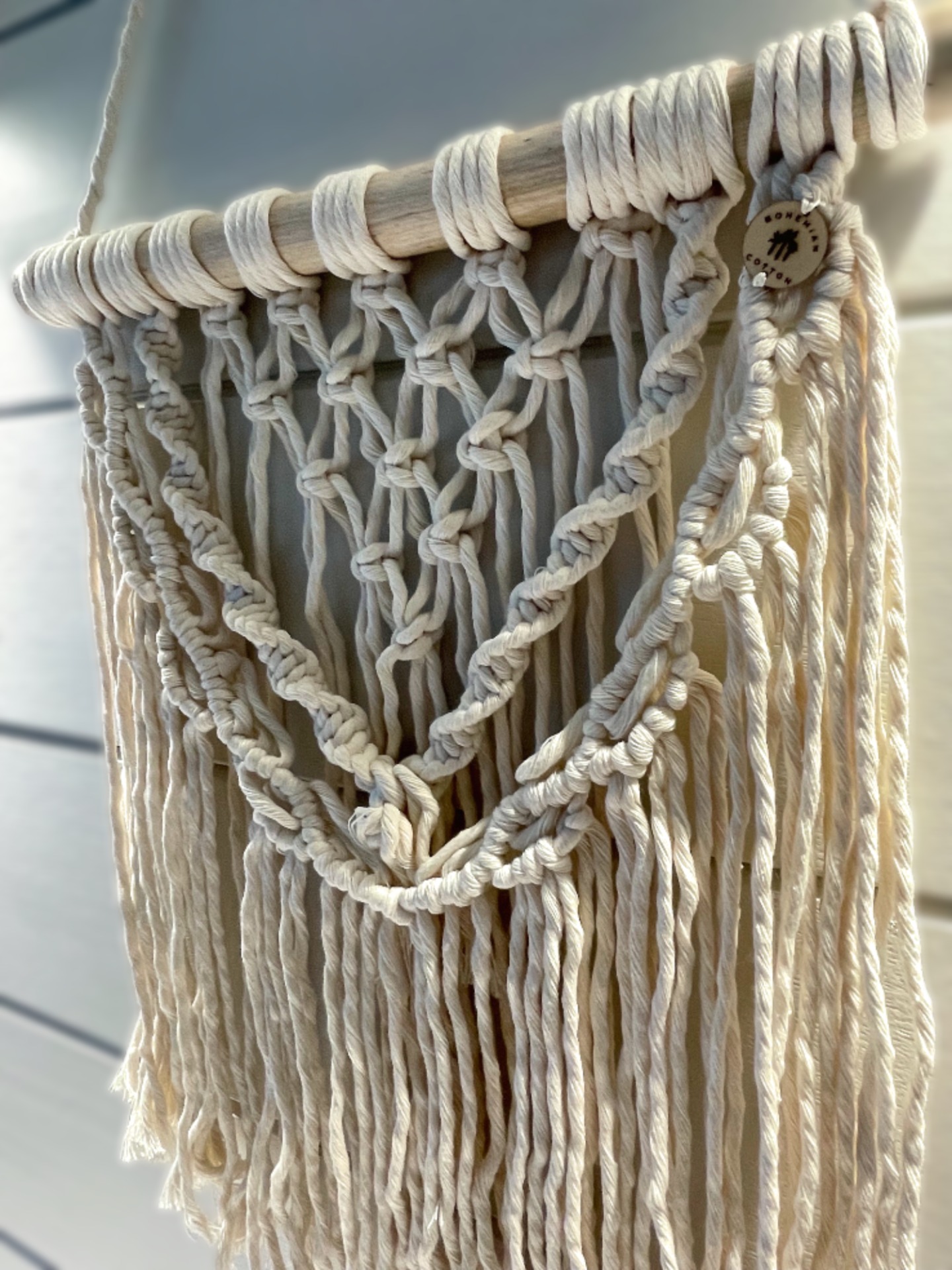 Ajoutez une touche d'authenticité et de nature à votre espace avec cette magnifique suspension en macramé.